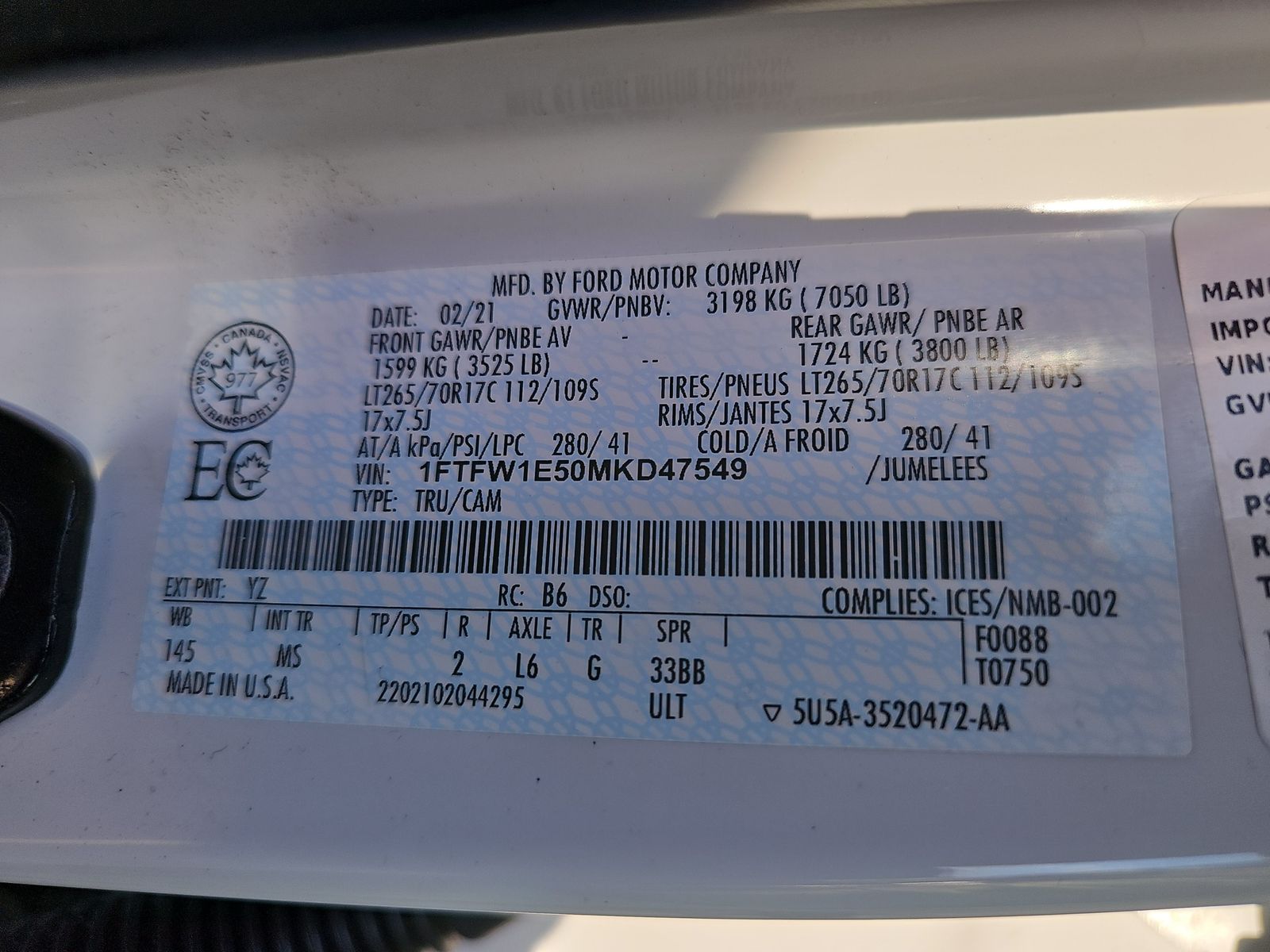 - 1FTFW1E50MKD47549