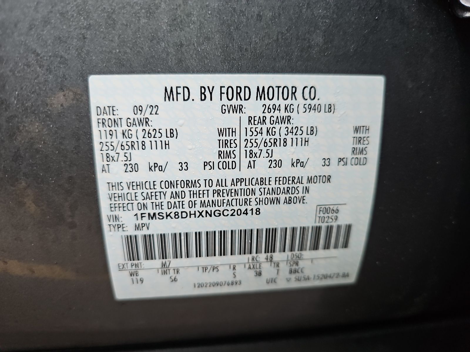 - 1FMSK8DHXNGC20418